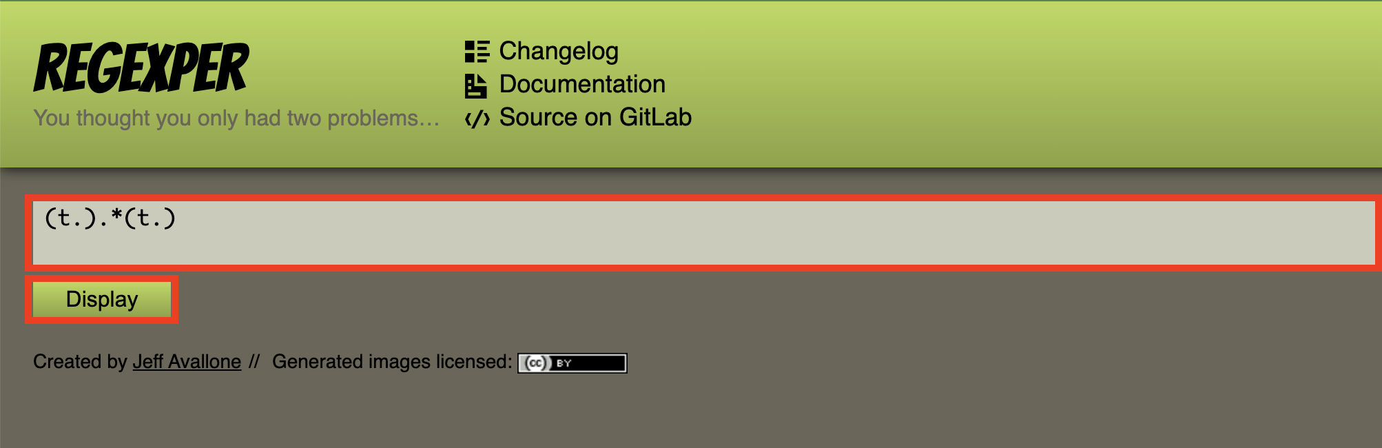 テキストエリアに正規表現を入力して『Display』を押すだけです!