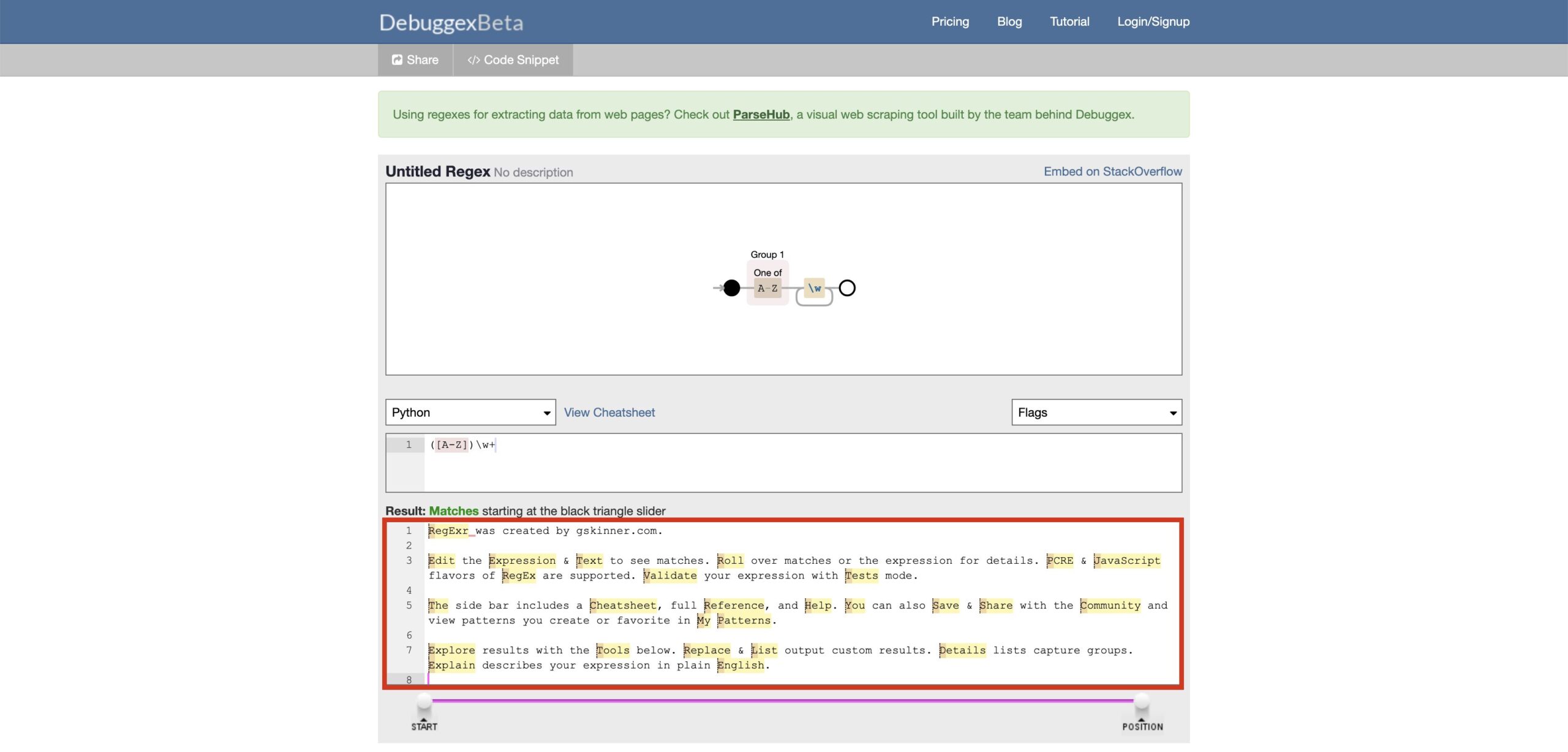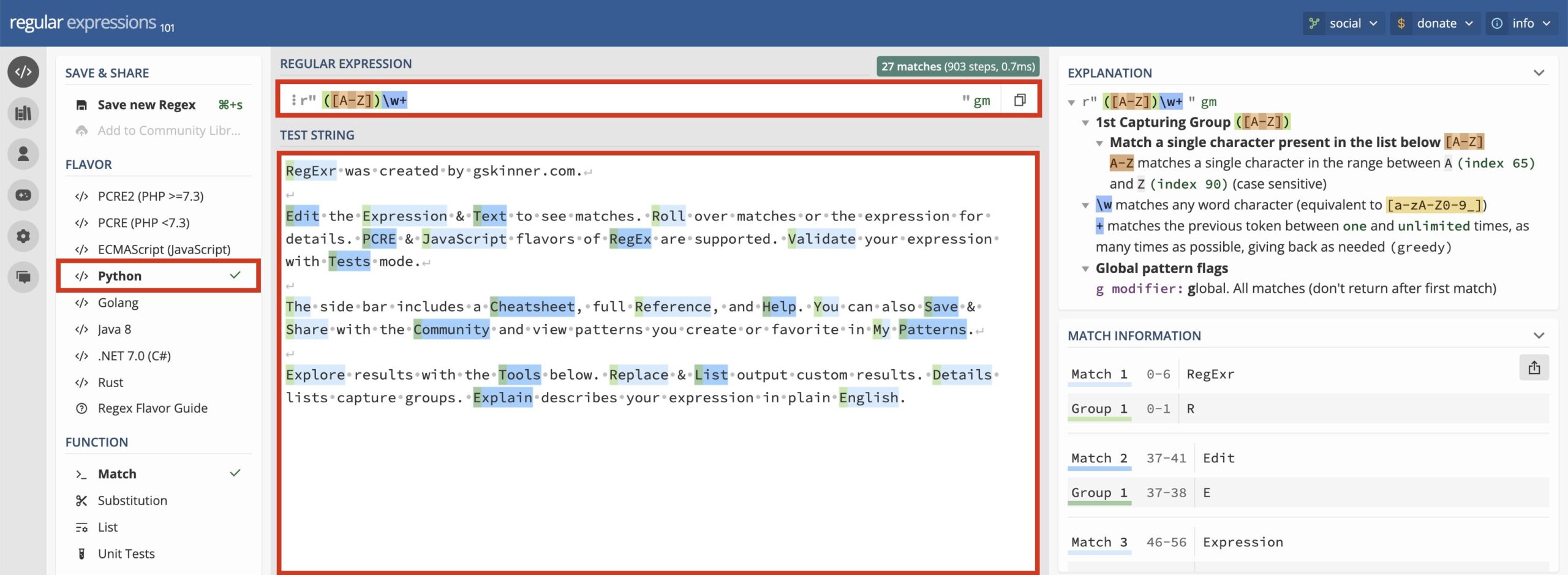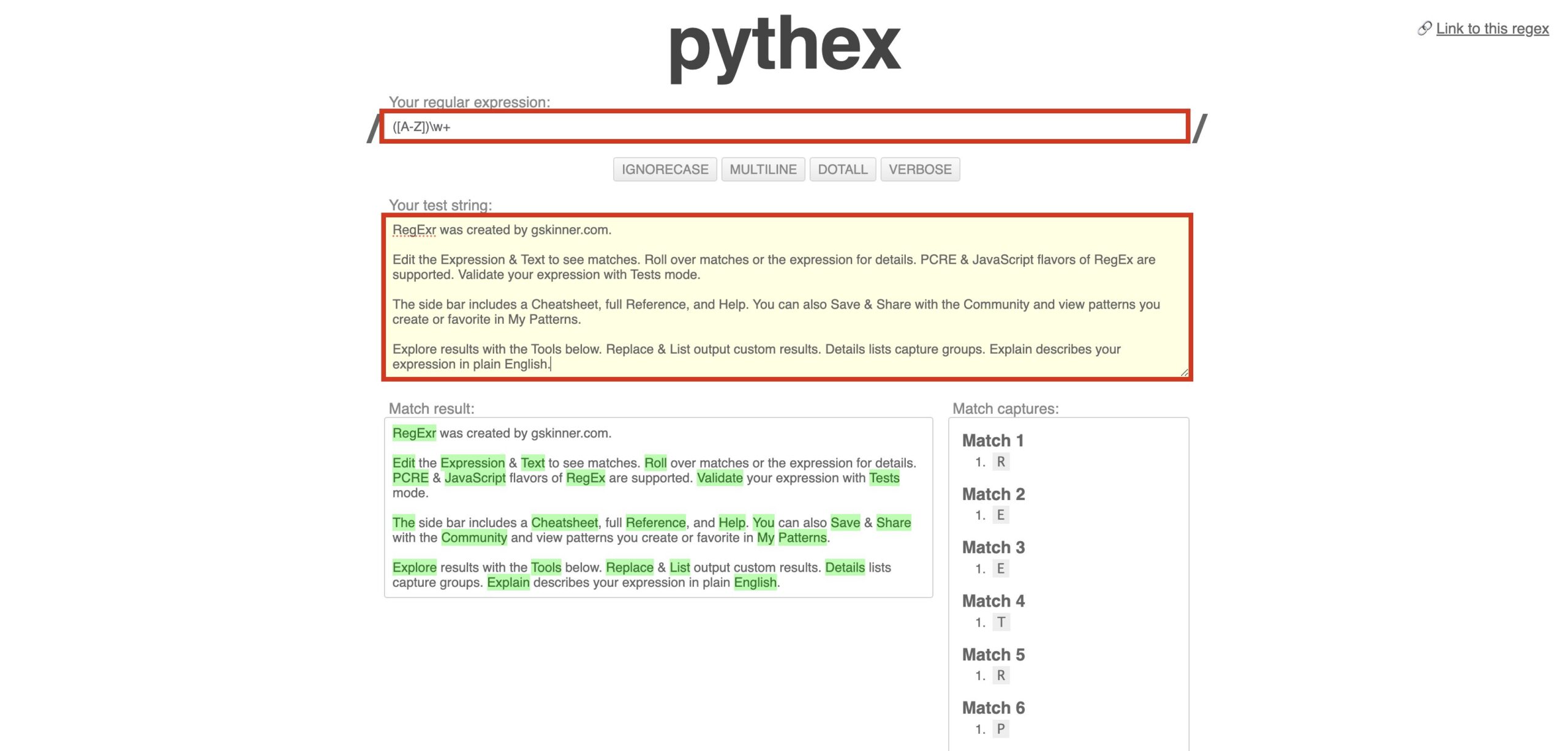 なのでその正規表現が意図したものになっているかチェックする必要がありますが、Pythonコード上のチェックでは手間がかかり、出力結果もわかりづらくなりがちです。