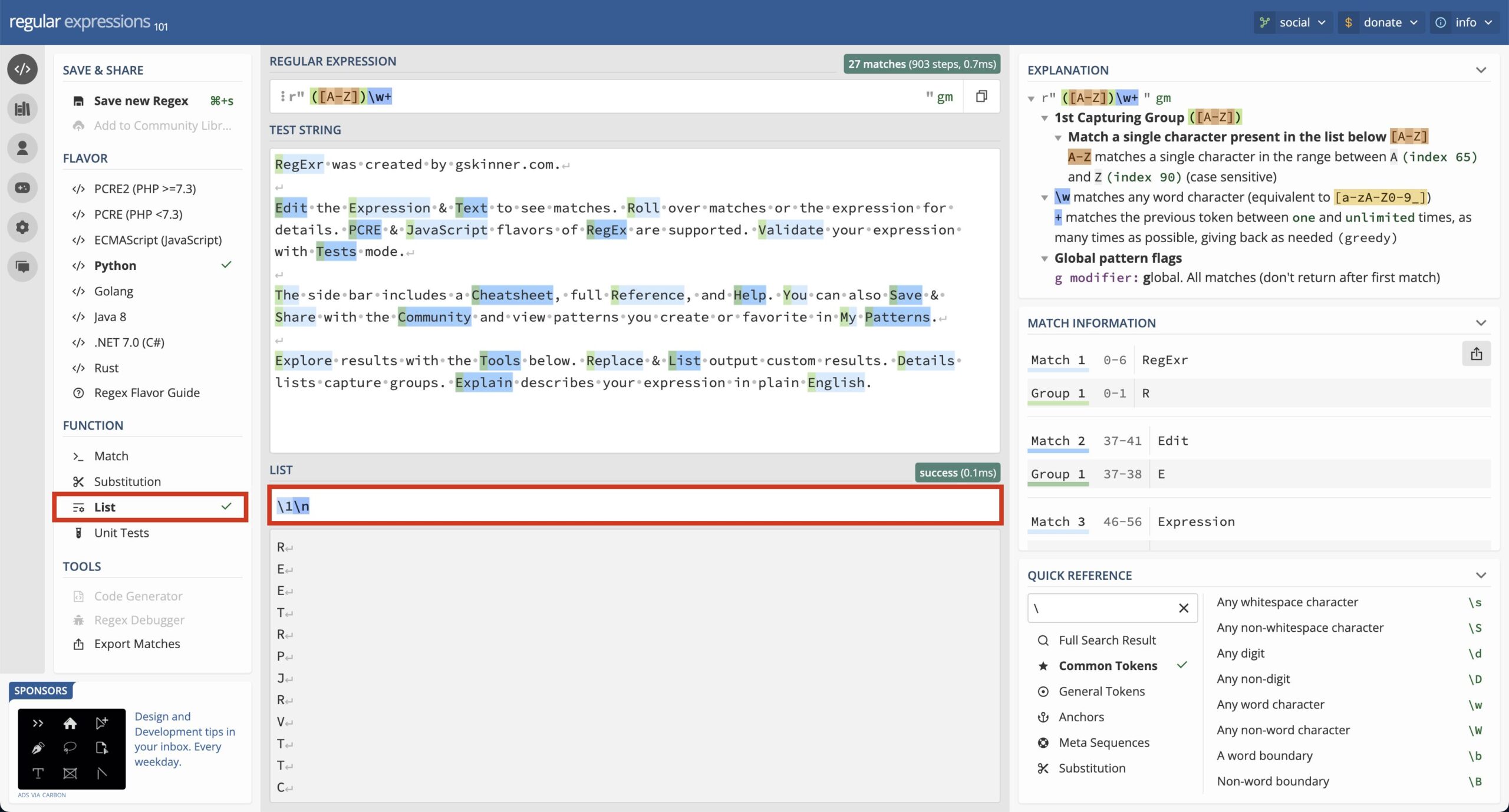 正規表現チェッカーを使えば、チェックしたい正規表現とマッチ対象の文字列を入力するだけでマッチ確認、置換結果確認、マッチした文字列のリスト出力などなど...さまざまな機能を提供してくれます!